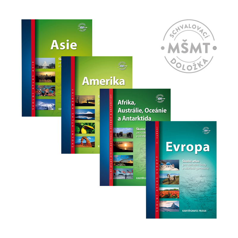 Balíček obsahuje 4 ks atlasů: „Evropa“, „Asie“, „Amerika“ a „Afrika, Austrálie, Oceánie a Antarktida“.