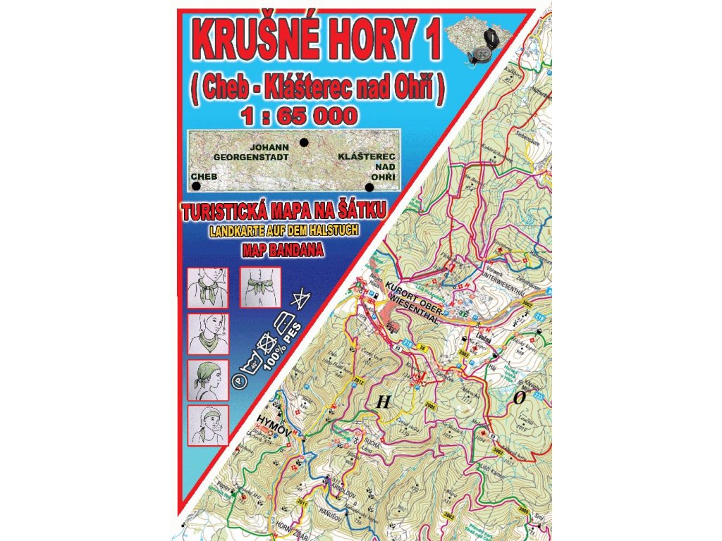 Krušné hory 1 (Cheb – Klášterec nad Ohří), 1 : 65 000 – mapa na šátku