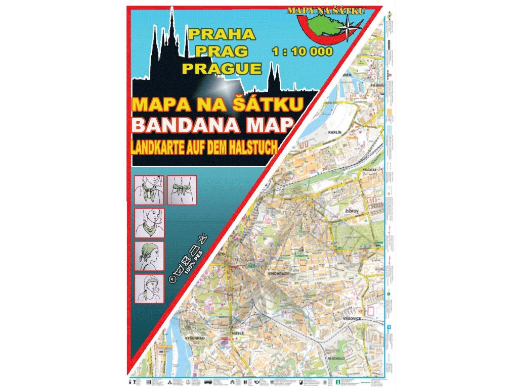 Unikátní mapa na našem trhu, kterou máte při výletech stále u sebe, ať už v batohu, kapse, na zápěstí, či jako čelenku na hlavě. Je odolná rozmarům počasí, a i když ji ušpiníte, snadno ji vyperete a můžete dále používat. Ideální společník pro turisty, cykloturisty, vodáky a všechny ostatní, kdo se vydávají ven. Kromě orientace ve městě, šátek samozřejmě můžete využít mnoha jinými způsoby, jako čelenku, obvaz, kapesník...